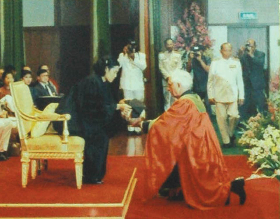 In 1987, AIT presented (President Alastair M. North, pictured) its first Gold Medal to His Majesty King Bhumibol Adulyadej of Thailand in recognition of His Majesty’s Outstanding Leadership in Rural Development.